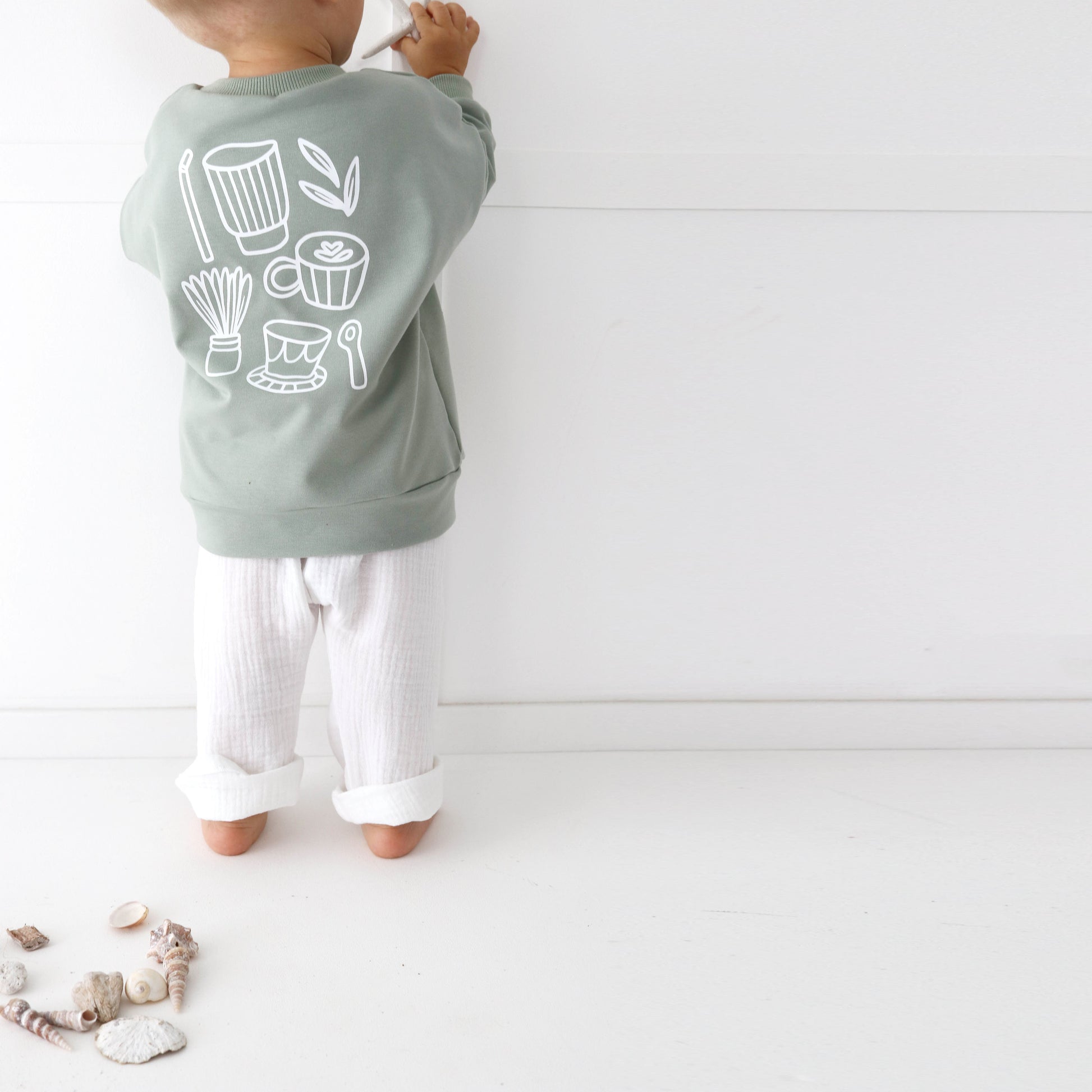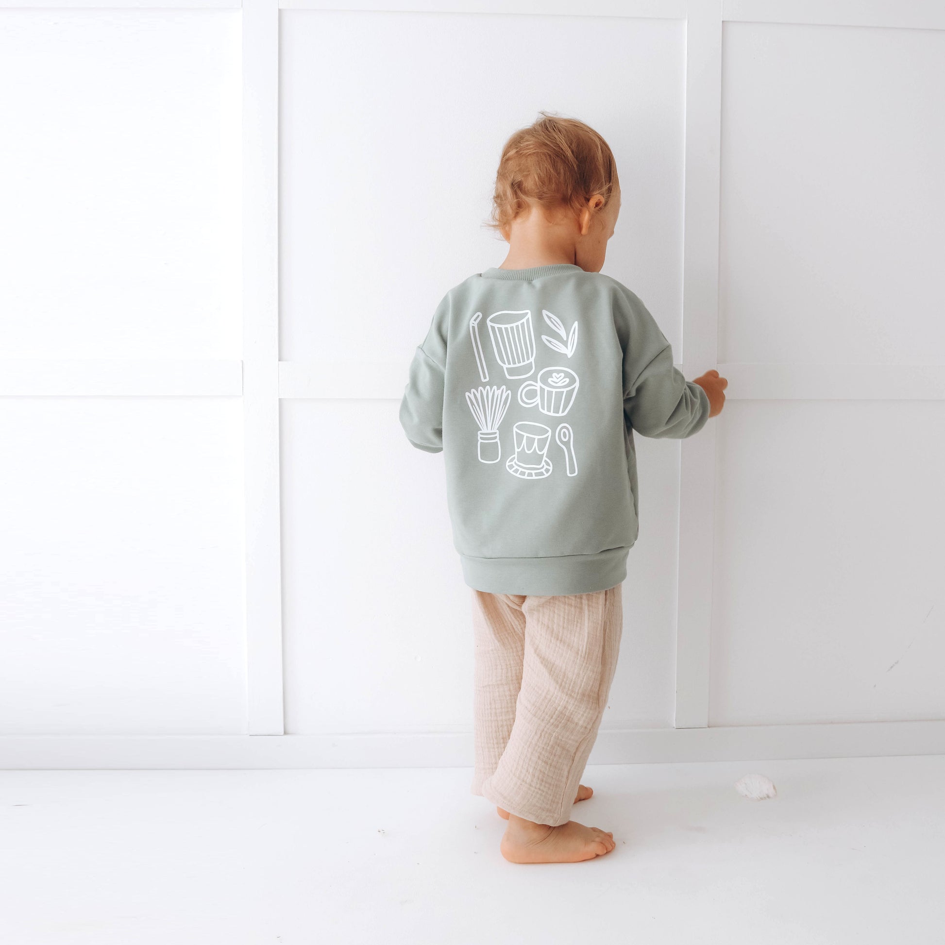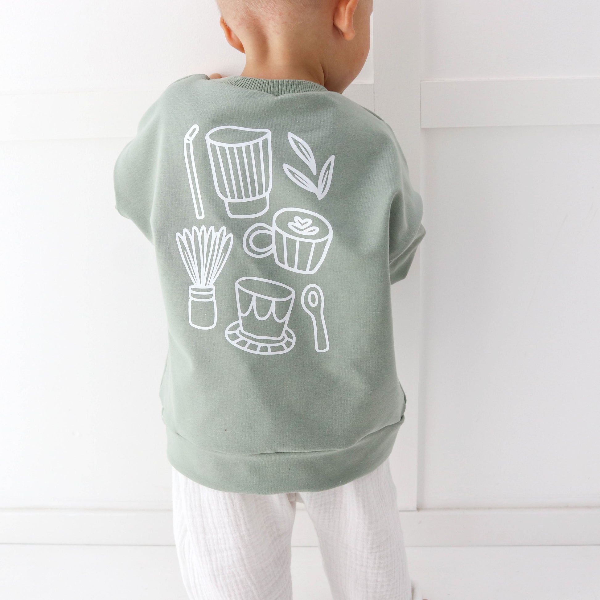 Cozy, cool, and a little bit matcha-mad! This oversized kids’ sweatshirt comes in a dreamy matcha green with a playful matcha print—perfect for little trendsetters who love comfort with a twist of fun.