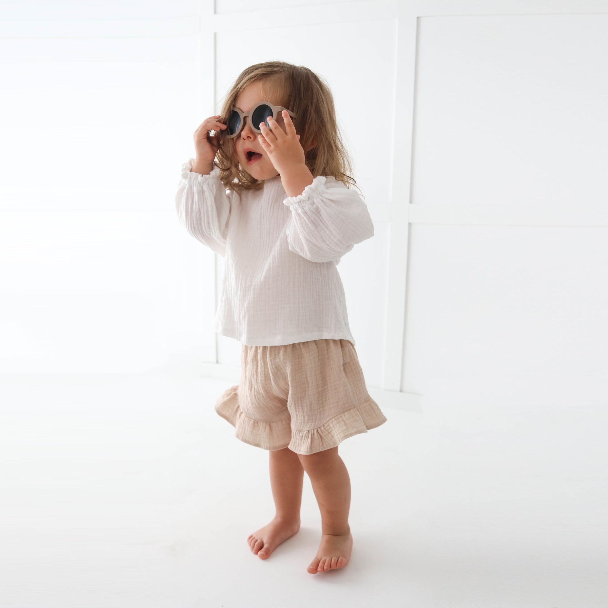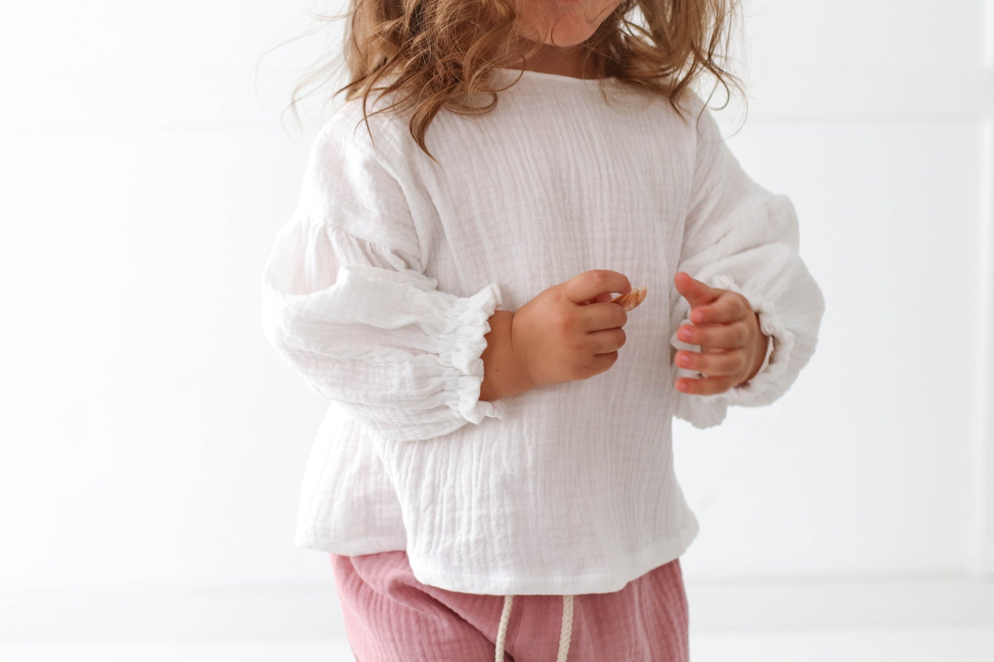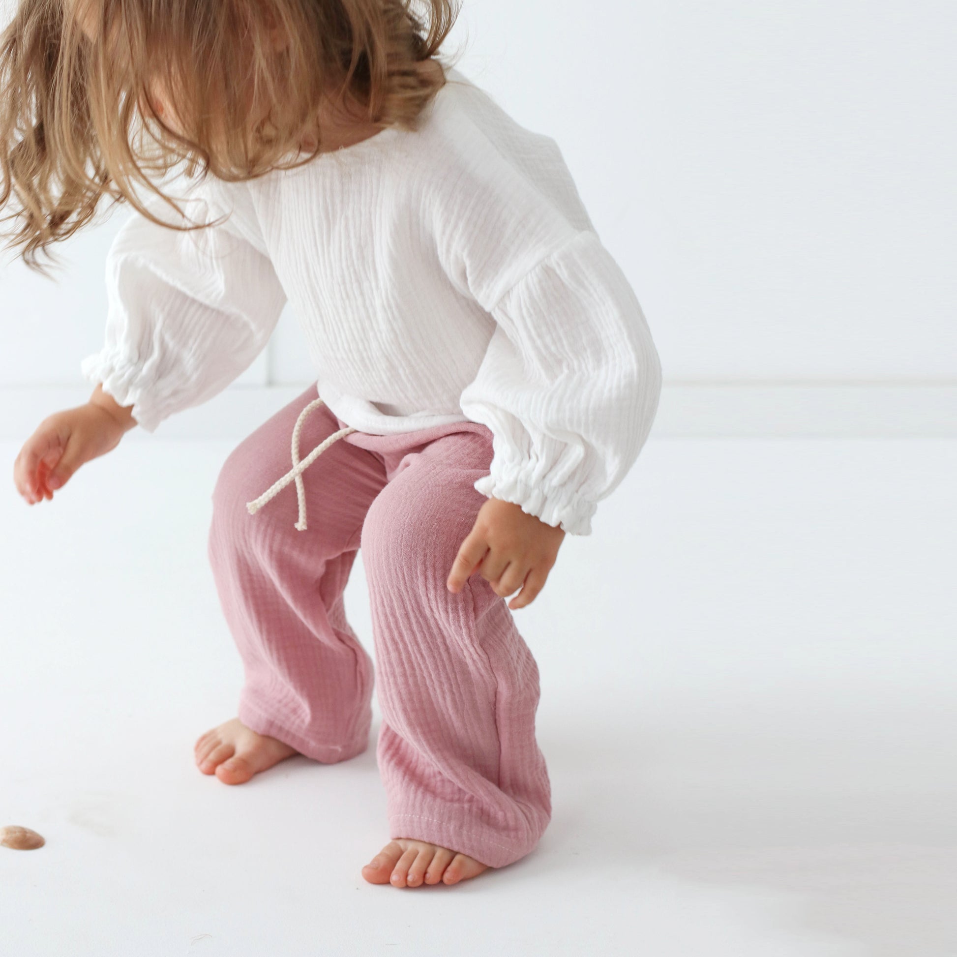 A breezy little dream for your mini! This handmade muslin double gauze top features playful puffy sleeves, soft elastic cuffs for comfort, and sweet coconut buttons at the back. Made to order with love, it’s the perfect mix of cozy and chic for every little adventure.