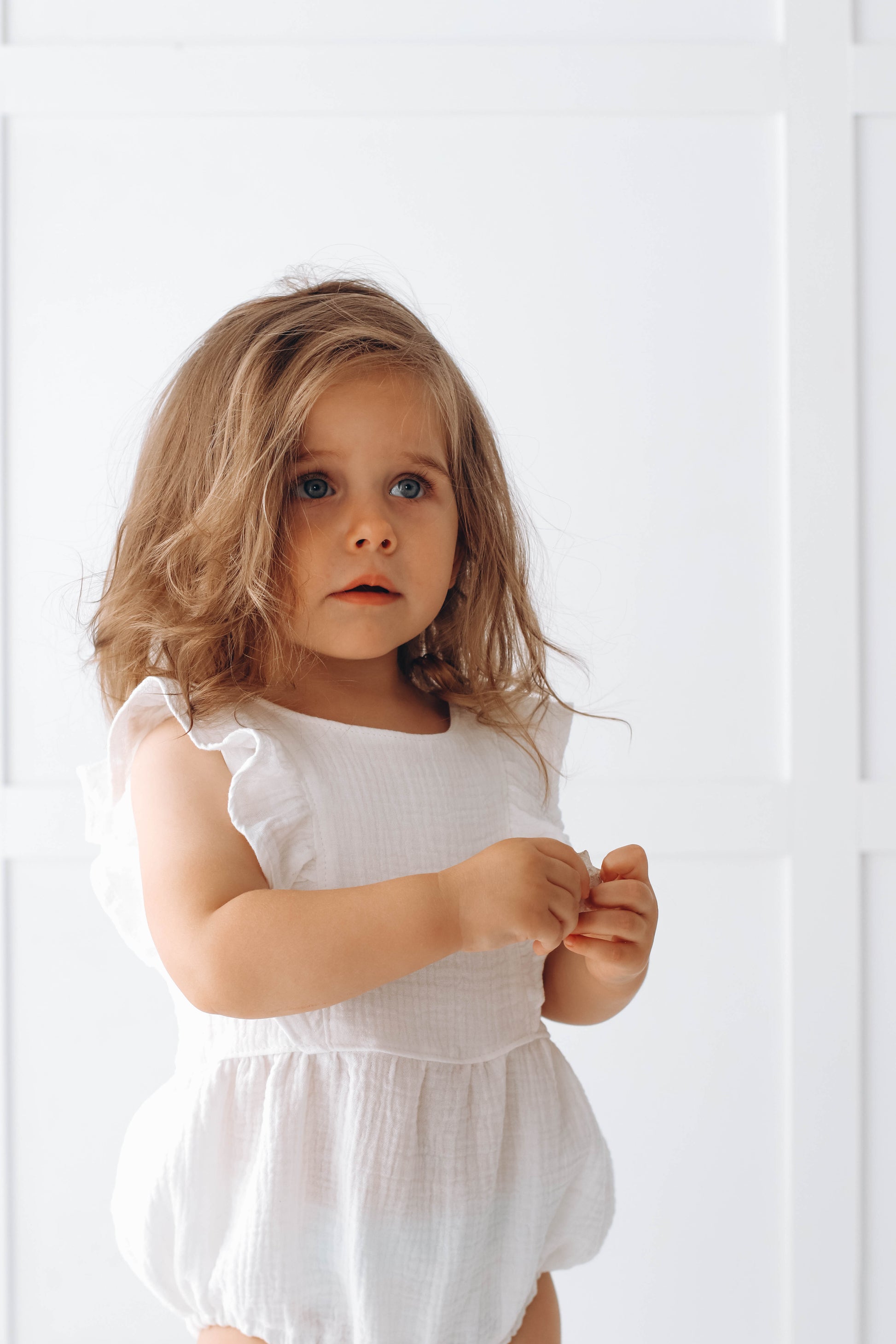 Sweet and breezy! This sleeveless baby romper comes with playful ruffles and easy coconut button closures. Soft, comfy, and oh-so-adorable—perfect for little adventures and big cuddles.